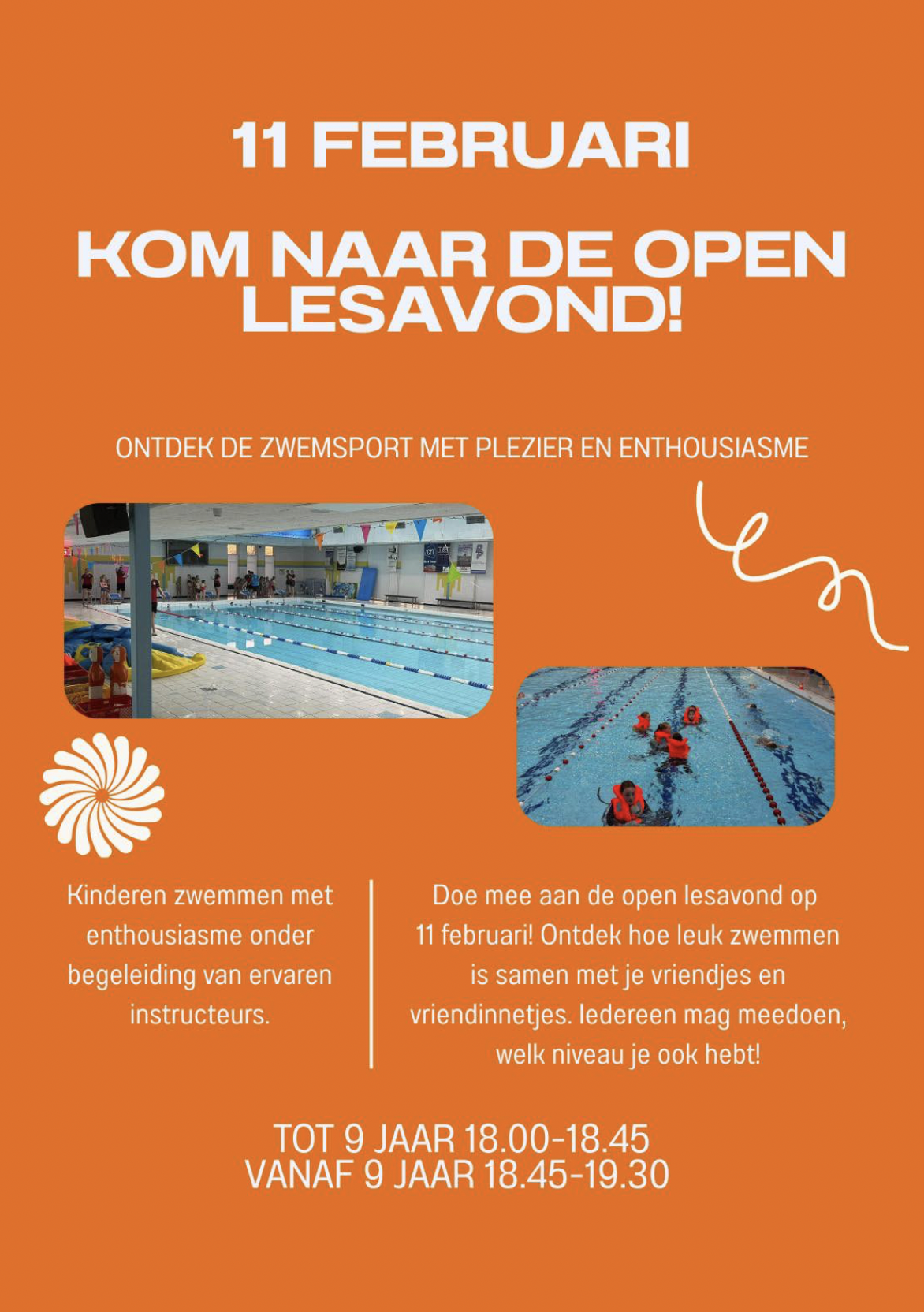 Samen met vriendjes en vriendinnetjes ontdekken ze hoe leuk zwemmen is. Iedereen mag meedoen, ongeacht niveau of ervaring. Plezier, veiligheid en enthousiasme staan deze avond centraal!